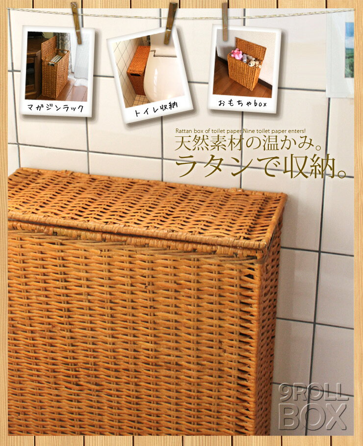お買い物ガイド 温かみのある天然ラタン素材を使用したトイレットペーパー収納ボックス。